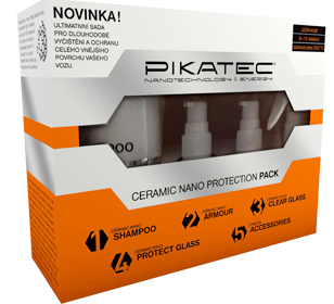 Set nanokosmetiky CERAMIC PROTECTION PACK na komplexní ošetření a ochranu vašeho vozu. Sada obsahuje Ceramic Nano Clear Glass, Ceramic Nano Protect Glass, Ceramic Nano Shampoo, Ceramic Nano Armour, 2x aplikační utěrku z mikrovlákna, ochranné rukavice a informační brožuru.